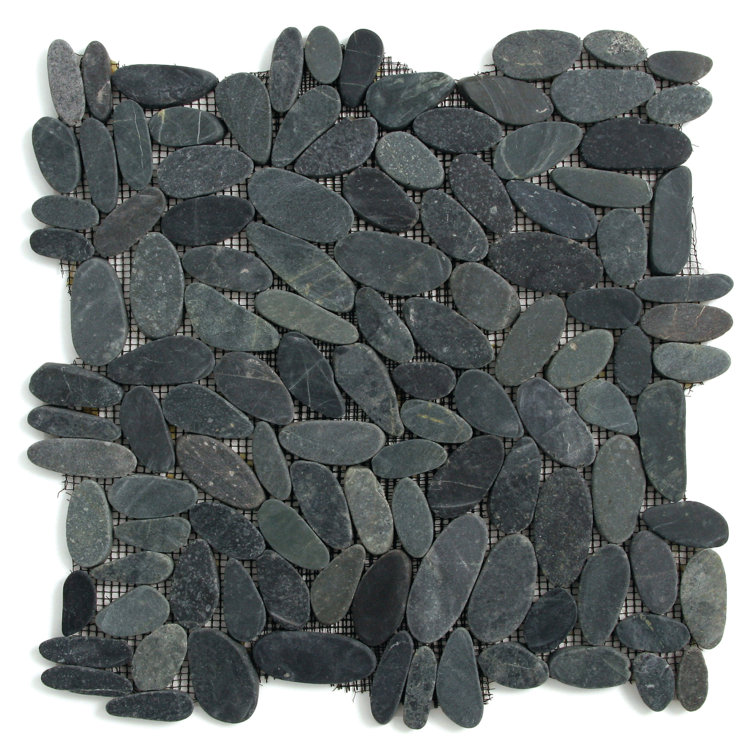 Sliced Charcoal Black Pebble Tile Luxury Bathroom Floor And Wall Accent Tilehub